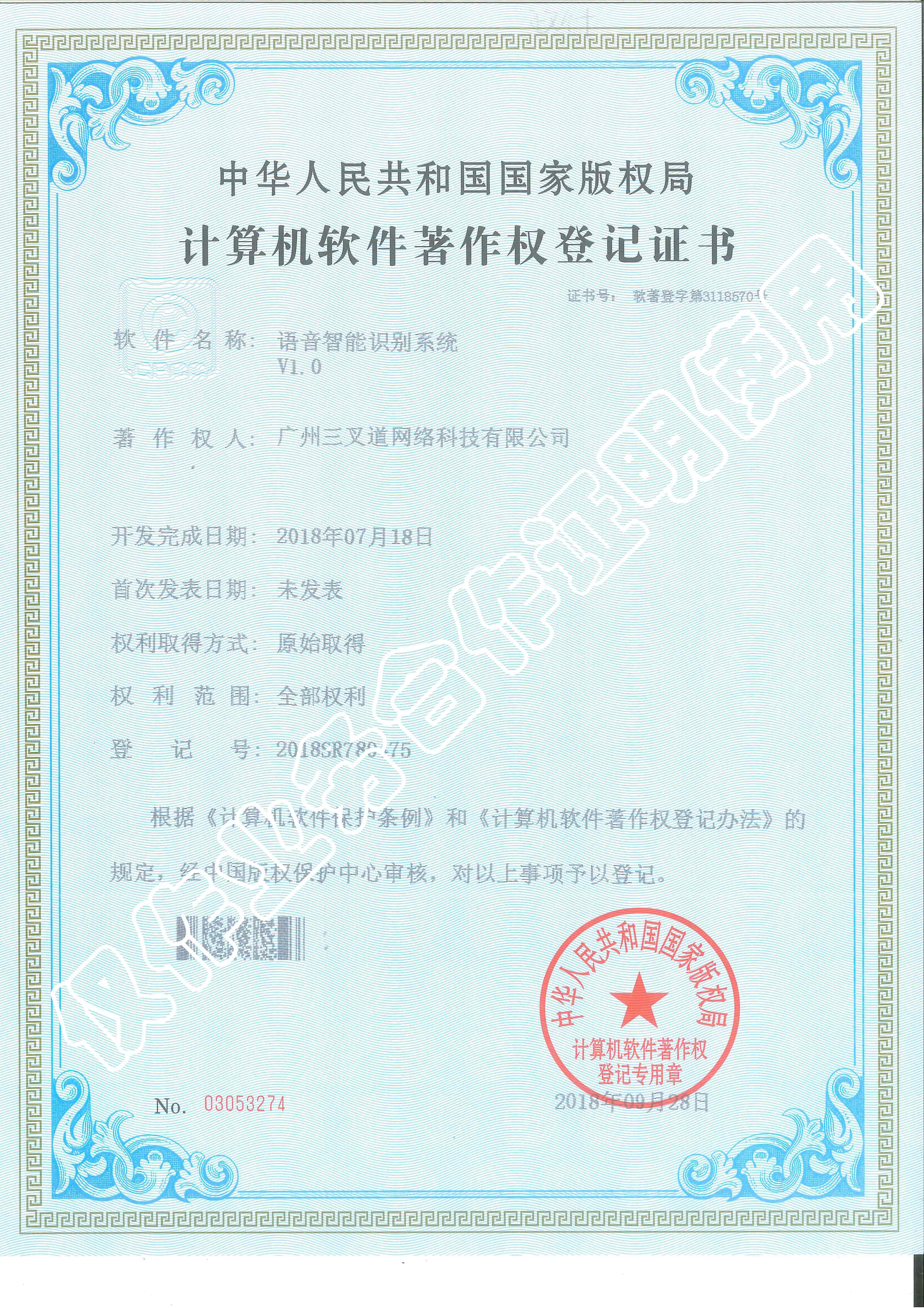語音智能識別系統(tǒng)著作權(quán)