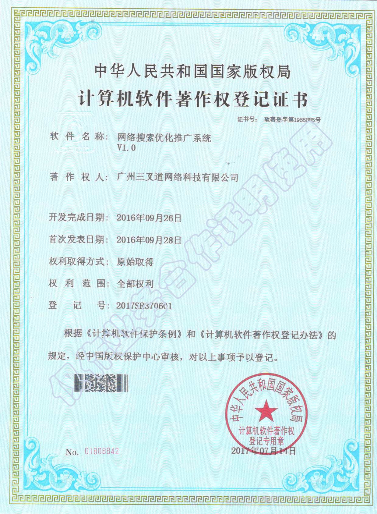 網(wǎng)絡(luò)搜索優(yōu)化推廣系統(tǒng)軟件著作權(quán)
