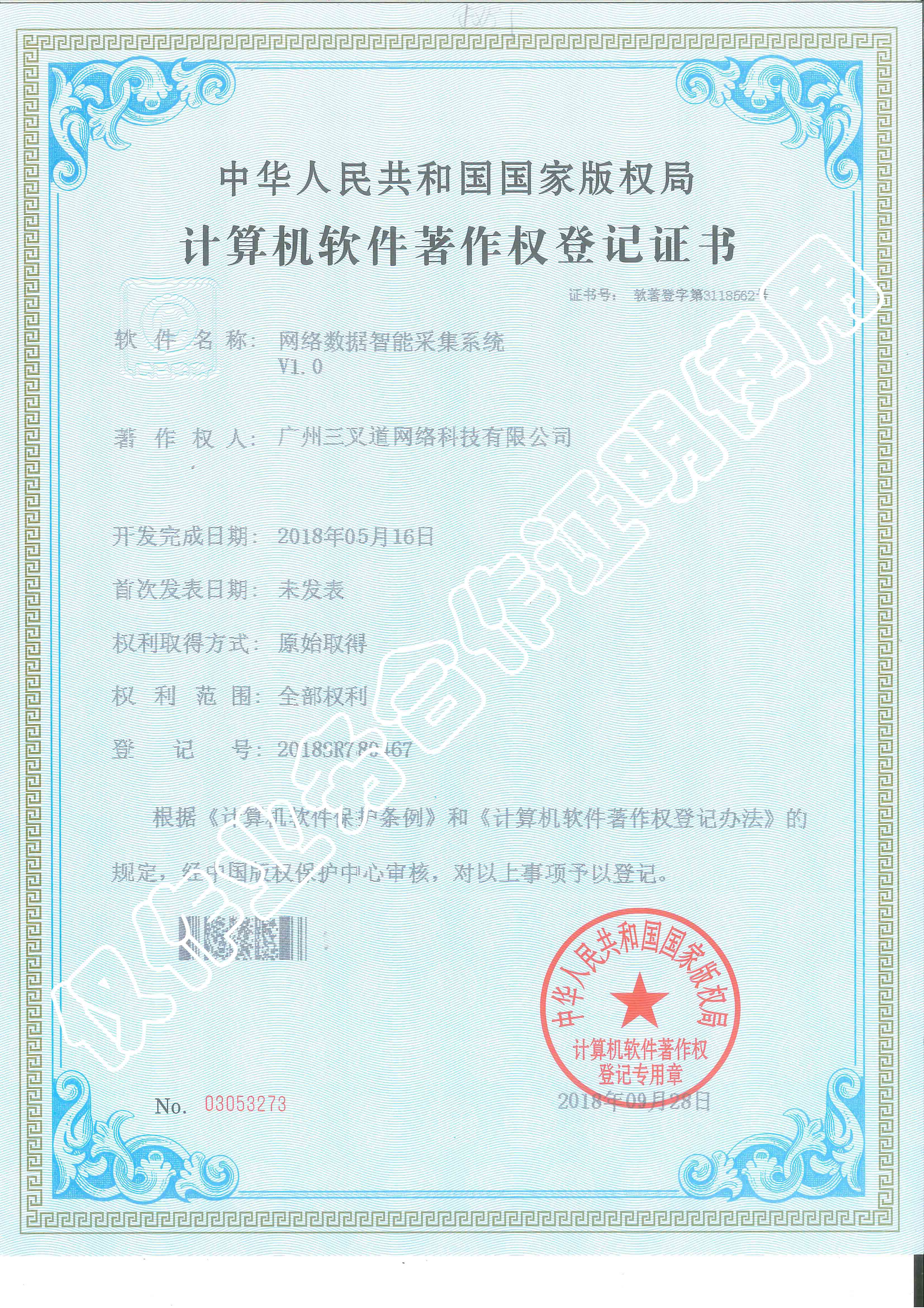 網(wǎng)絡(luò)數(shù)據(jù)庫智能采集系統(tǒng)著作權(quán)